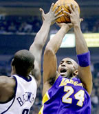 April 25 - STAPLES CENTER - LOS ANGELES. After misfiring badly in game 3, Kobe Bryant scored the Lakers' first 11 points to set the tone of a 108-94 L.A. victory at Utah. The Lakers lead the series 3-1 and return to L.A. to try to finish it on Monday. In the second quarter the Lakers scored 40 points, including a 20-2 run that turned a 7-point deficit into a lead they never gave up. Kobe finished with 38 points on 16-for-24 shooting. By halftime he had scored 24 making 10 of his 13 attempts and the Lakers were leading 60-53. Utah got within 5 twice early in the third but the Lakers played good defense and limited the Jazz to 16 points in the quarter to basically end the game. Utah's fans were leaving midway throughout the fourth of what could be their final home gome of this 2008-09 season. Andrew Bynum who was thought to be a key piece for the Lakers hasn't helped much so far and despite a couple of good games to end the season, his timing looks off and he has picked up so many quick fouls against the Jazz. That's why he was benched by coach Phil Jackson who put him on the floor just 7 minutes (2 points, 1 rebound). Pau Gasol playing center had 13 points and 10 rebounds while Lamar Odom returned to the starting lineup and was productive with 10 points, 15 rebounds and 6 assists. Deron Williams had 23 points and 13 assists and Carlos Boozer also scored 23 and pulled down 16 rebounds for the Jazz.. |